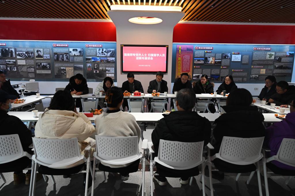 12月27日下午,学校在红色文化体验馆召开党外人士、归国留学人员迎新年座谈会。副校长任永峰出席会议并讲话。我校民主党派、无党派代表人士和归国留学人员教师代表20余人参加了座谈会。
